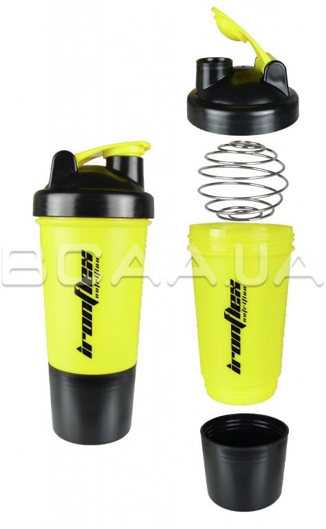 Шейкер Ironflex Nutrition с современной инновационной модификацией позволяет обеспечить себя любым спортивным питанием в любой подходящий момент. Этот уникальный удобный шейкер имеет тяжелый шарик из нержавеющей стали, который мгновенно смешивает коктейль, переводя твердый осадок в взвешенное состояние. С помощью данного шейкера Вы сможете быстро и без особых усилий готовить любимые протеиновые коктейли, гейнеры и аминокислотные комплексы. Так же снизу прикручивается дополнительный контейнер для порошка или таблеток.