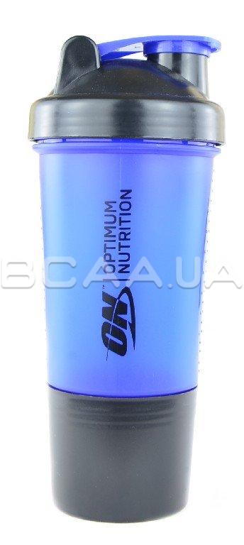 - ON Premium Shaker - с современной инновационной модификацией позволяет обеспечить себя любым спортивным питанием в любой подходящий момент. Этот уникальный удобный шейкер имеет тяжелый шарик из нержавеющей стали, который мгновенно смешивает коктейль, переводя твердый осадок в взвешенное состояние. С помощью данного шейкера Вы сможете быстро и без особых усилий готовить любимые протеиновые коктейли, гейнеры и аминокислотные комплексы. Так же снизу прикручивается дополнительный контейнер для порошка или таблеток.