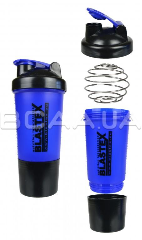 - Шейкер Blastex Nutrition - двух компонентный шейкер , с современной инновационной модификацией позволяет обеспечить себя любым спортивным питанием в любой подходящий момент. Этот уникальный удобный шейкер имеет тяжелый шарик из нержавеющей стали, который мгновенно смешивает коктейль, переводя твердый осадок в взвешенное состояние. С помощью данного шейкера Вы сможете быстро и без особых усилий готовить любимые протеиновые коктейли, гейнеры и аминокислотные комплексы. Так же снизу прикручивается дополнительный контейнер для порошка или таблеток.