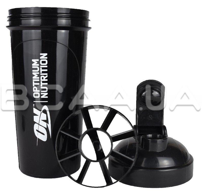 Шейкер ON Black подходит для приготовления и употребления белковых, белково-углеводных и прочих коктейлей. Стакан шейкера снабжен резьбой, крышка прикручивается к стакану, пластик высокого качества. Так же благодаря хорошо продуманному горлышку на крышке, ваш напиток не когда не прольется.Объем: 700 мл