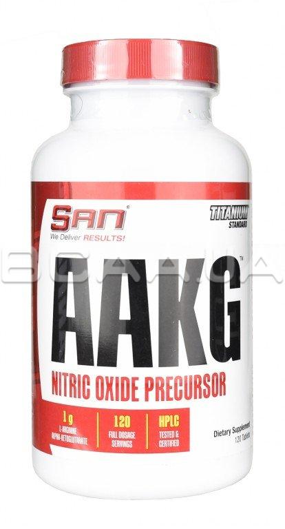 - San AAKG - повышает уровень оксида азота и тем самым улучшает кровоснабжение мышц, доставку в них питательных веществ и кислорода. В итоге мышцы растут удивительно быстро. Кроме того, в мышцах уменьшается содержание молочной кислоты и аммиака, вызывающих мышечное утомление. Большую роль в росте мышц играет тот факт, что на фоне физических нагрузок Аргинин-альфакетоглютарат стимулирует синтез гормона роста человека - главного анаболического гормона тела человека. Приём Аргинина-альфакетоглютарата намного интенсивнее, чем аргинин расслабляет спазмированные сосуды, уменьшает склонность крови к тромбообразованию, оптимизирует работу иммунной системы.