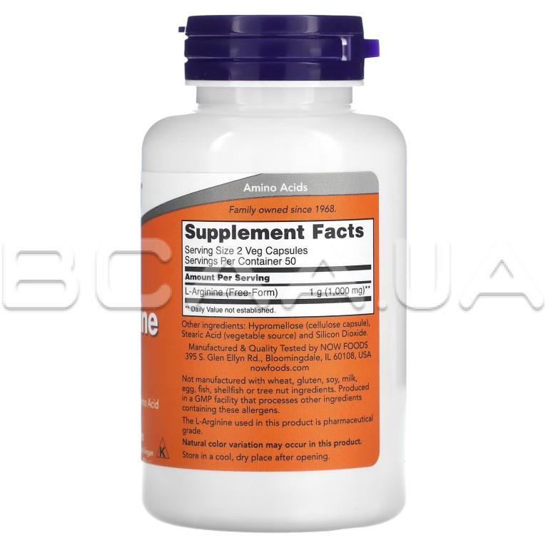 Описание Now Foods, L-Arginine 500 mg, Veg Capsules