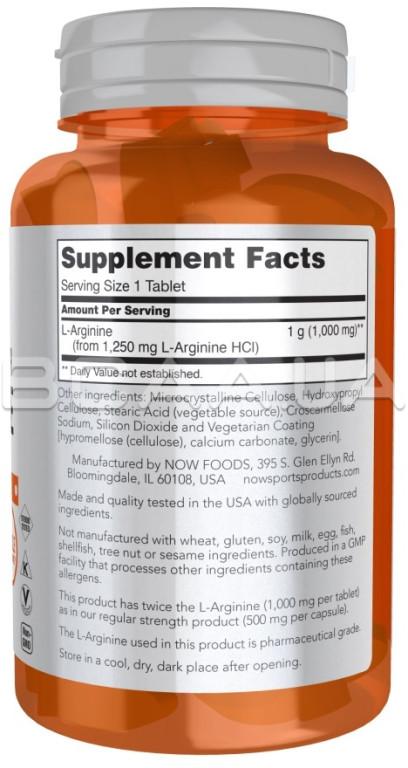 Описание Now Foods, Double Strength L-Arginine 1000 mg, Tablets
