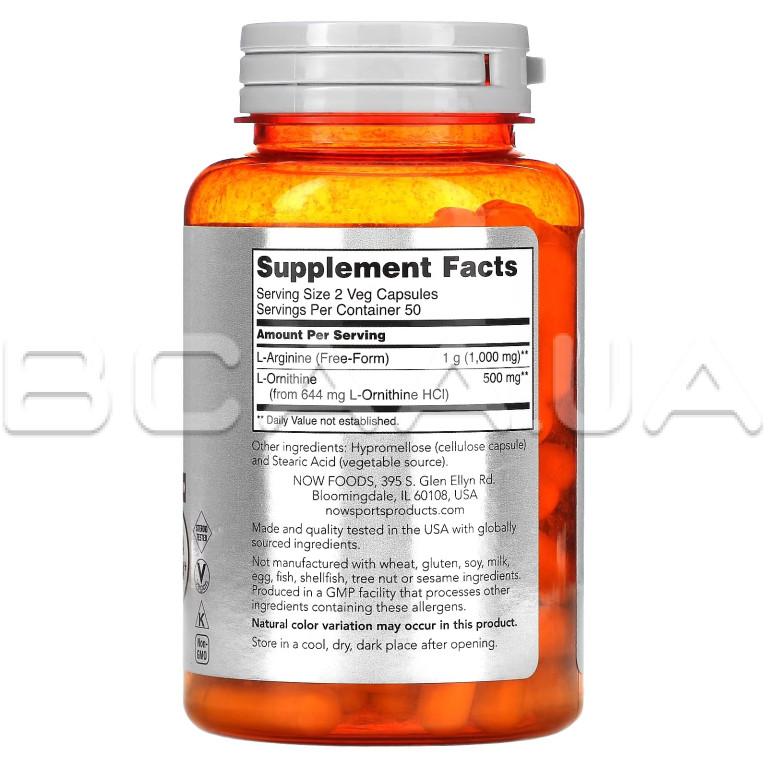 Описание Now Foods, Sports, Arginine & Ornithine, Veg Capsules