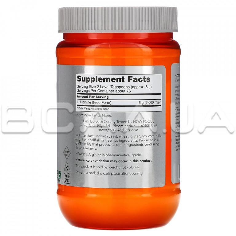 Описание Now Foods, Sports, L-Arginine Powder, 454 g