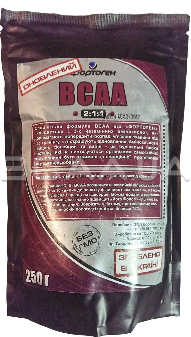 ФОРТОГЕН BCAA 250 грамм - стандартные bcaa с соотношением 2:1:1 (лейцин, изолейцин, валин) - преобладающей аминокислотой выступает лейцин (самая ценная анаболичесвая аминокислота).