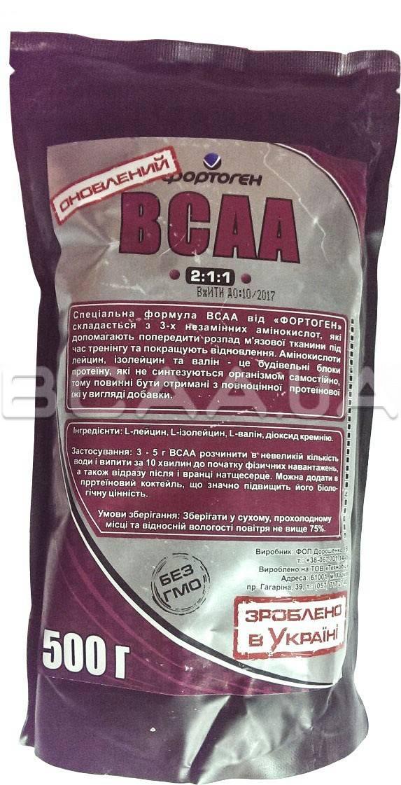ФОРТОГЕН BCAA 500 грамм - стандартные bcaa с соотношением 2:1:1 (лейцин, изолейцин, валин) - преобладающей аминокислотой выступает лейцин (самая ценная анаболичесвая аминокислота).