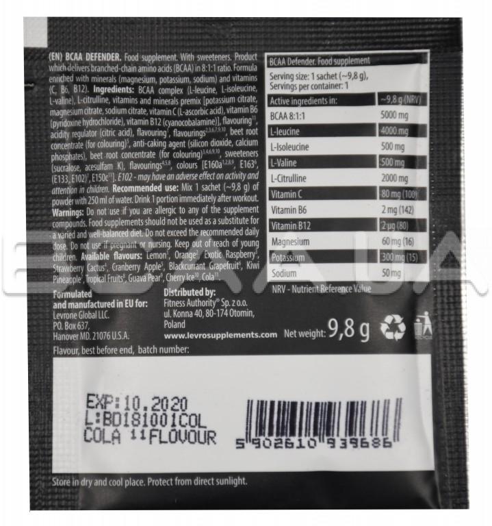 Описание Kevin Levrone Bcaa Defender 9,8 грамм
