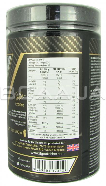 Ищите мощный аминокислотный комплекс? Тогда биодобавка BCAA 10:1:1 от Dorian Yates Nutrition (England) – это то, что вам нужно! В каждой порции содержится 12 грамм аминокислот, которые направлены на активный рост сухой мышечной массы, ее защиту от разрушения и быстрое восстановление после интенсивных тренировок. Также входящие в состав цитруллин малат, бета-аланин и тирозин значительно повышают уровень выносливости, и дают возможность совершать больше повторений при каждом подходе. Такая уникальная и мощная формула препарата BCAA 10:1:1 не имеет аналогов на рынке. Регулярный прием аминокислотного комплекса однозначно приведет вас к желаемым результатам значительно быстрее.
