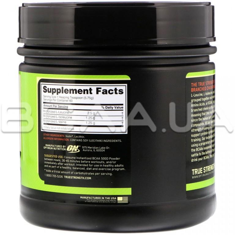 Американская компания Optimum Nutrition удерживает лидирующие позиции на рынке спортпита. Все благодаря качественной продукции с высокой эффективностью, которая нравится как опытным, так и начинающим атлетам. Одним из востребованных препаратов считается аминокислотный комплекс Instantized ВСАА 5000 POWDER. Он включает в себя аминокислоты с разветвленными боковыми цепочками, которые крайне необходимы людям, стремящимся к высоким спортивным показателям. Каждая порция пищевой добавки содержит лейцин, изолейцин и валин в соотношении 2:1:1. Регулярный прием позволит выстроить спортивное и рельефное тело, повысить силу и выносливость, предотвратить разрушение мышечной массы, оптимизировать обмен веществ и не только. Комплекс Instantized ВСАА 5000 POWDER не содержит посторонних компонентов, вы получаете порцию аминокислот ВСАА в чистом виде. Это отличный продукт, который максимально сосредоточен на снабжении организма одними из важнейших нутриентов, способствующих достижению поставленных целей!