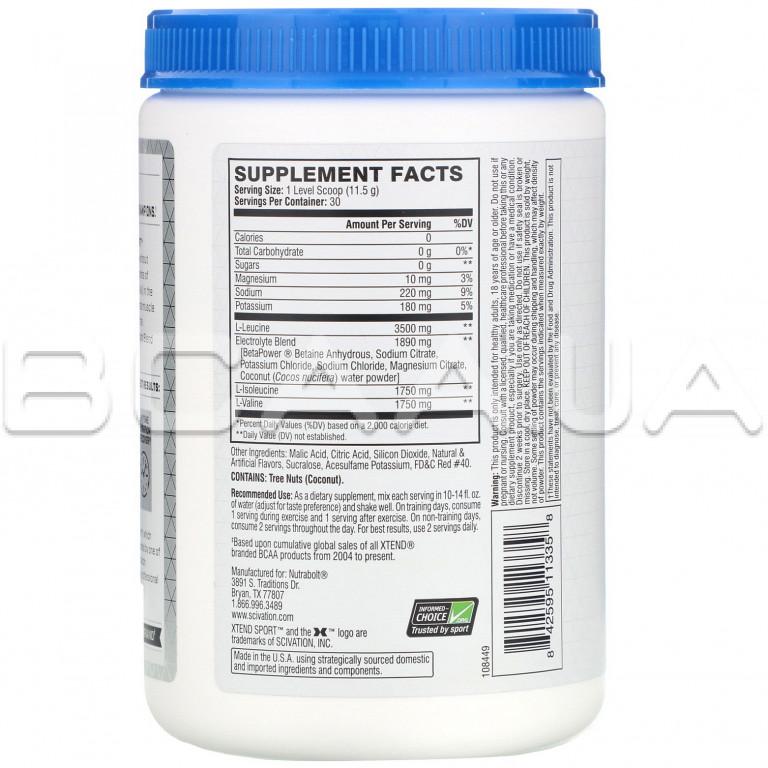 - Xtend Sport содержит в своем составе 14 граммов аминокислот с разветвленной цепью (BCAA) в порции. Продукт способствует восстановлению и росту мускулатуры, а смесь электролитов - повышению общей гидратации.