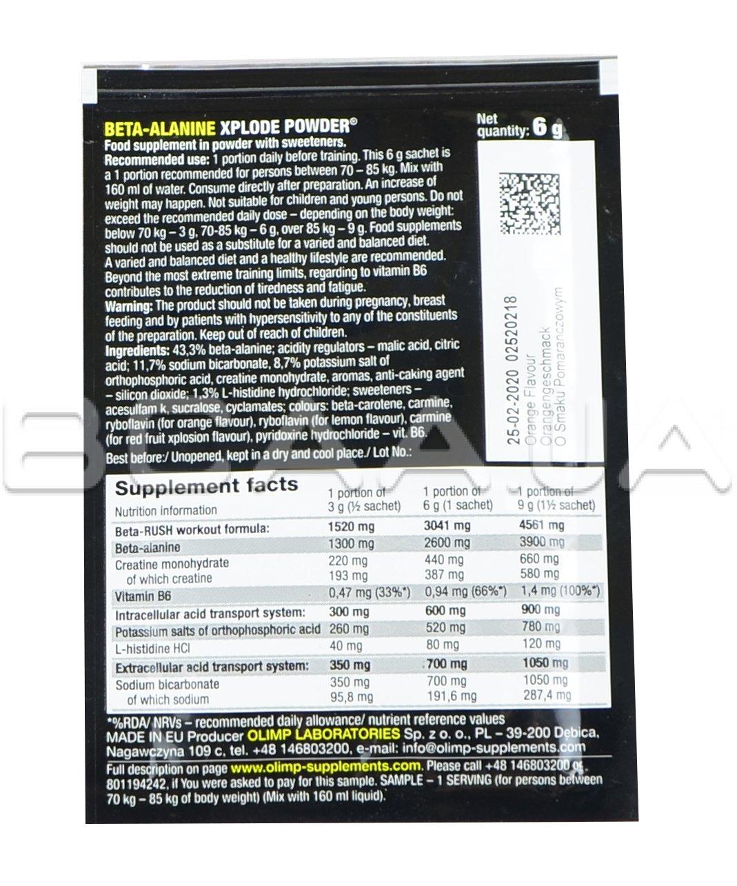 - Beta Alanine Xplode - анаболический продукт, который содержит матрицу, на основе аминокислоты Бета-Аланин. Бета-Аланин, как известно это многофункциональная, уникальная аминокислота, принимающая основное участие в производстве карнозина, который в свою очередь повышает уровень энергии, улучшает анаэробную и аэробную выносливость.