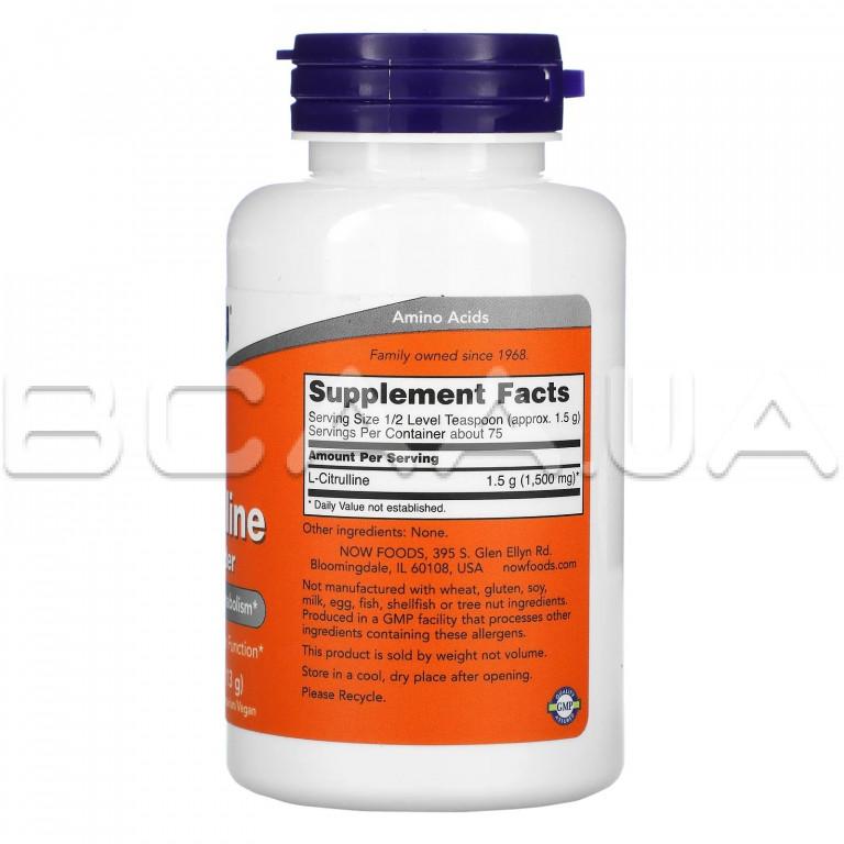 Описание Now Foods, L-Citrulline (Цитруллин), Pure Powder, 113 g