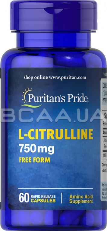 Описание Puritan's Pride, L-Citrulline 750 mg, Free Form, 60 Rapid Release Capsules