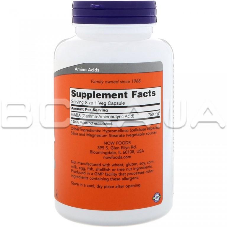 Описание Now Foods GABA 750 mg 200 Veg Capsules