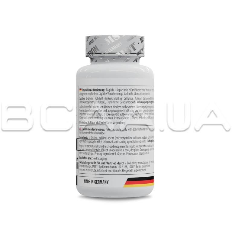 - MST, L-Glycine 1000 mg обеспечивает высокую дозу чистой формы аминокислоты глицина, необходимой для различных физиологических функций, включая передачу нервных импульсов, восстановление мышц и выработку коллагена. Каждая капсула содержит 1000 мг L-глицина, идеально подходящего для поддержки релаксации, качества сна и метаболического здоровья.