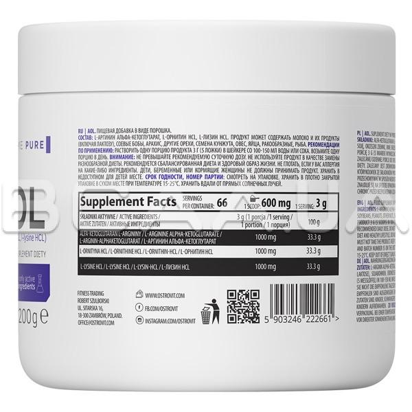Ингредиенты: L-аргинин альфа-кетоглутарат, L-орнитин HCL, L-лизин HCL.