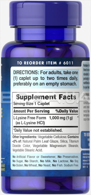 Отзывы о L-Lysine 1000 mg 60 Сaplets 5