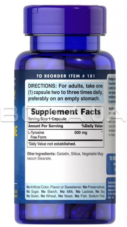 Описание Puritan's Pride, L-Tyrosine 500 mg, 100 Rapid Release Capsules