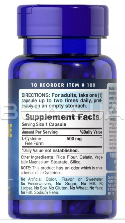 Описание Puritan's Pride L-Cysteine 500 mg 50 Rapid Release Capsules