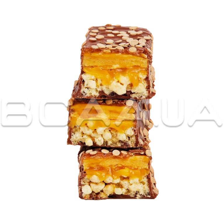 - Этот протеиновый батончик с великолепными слоями вкуса и текстуры, в том числе хрустящим слоем, покрытым белковым тестом и карамелью не оставит равнодушными любителей полезных сладостей.