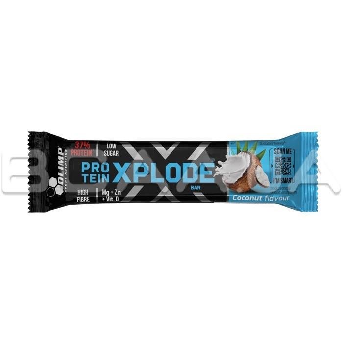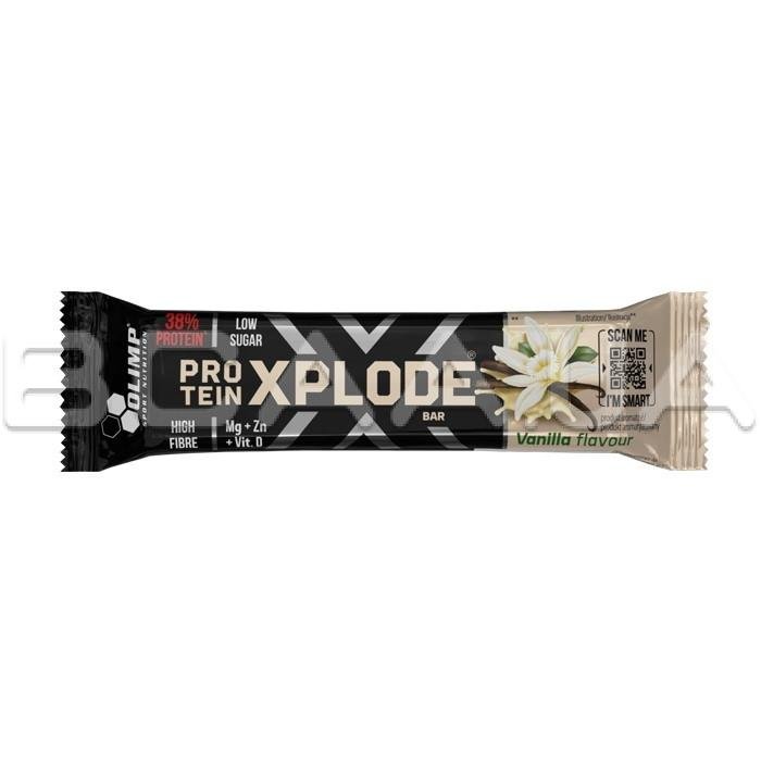 - Olimp, Protein Xplode Bar содержит белковую смесь с различной скоростью усвоения. Речь идет о концентрате молочного белка MPC, гидролизате коллагена, изоляте соевого белка, концентрате сывороточного белка WPC и гидролизованном пшеничном глютене. Протеиновый батончик не содержит много сахара. Так что это отличная альтернатива сладостям. В его состав не входят консерванты, искусственные красители и пальмовое масло. Однако в состав был добавлен витамин D, магний и цинк и пищевые волокна.