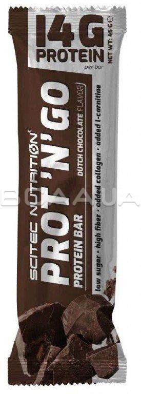 - Scitec Nutrition Prot'n'Go - это самый простой способ удовлетворить ваши потребности в белках. Вы можете потреблять батончик повсюду и в любое время, будь то до тренировки, после тренировки или в качестве закуски между ними. Батончик содержит коллаген, который является самым распространенным белком в организме человека, главным образом, в хряще и коже.