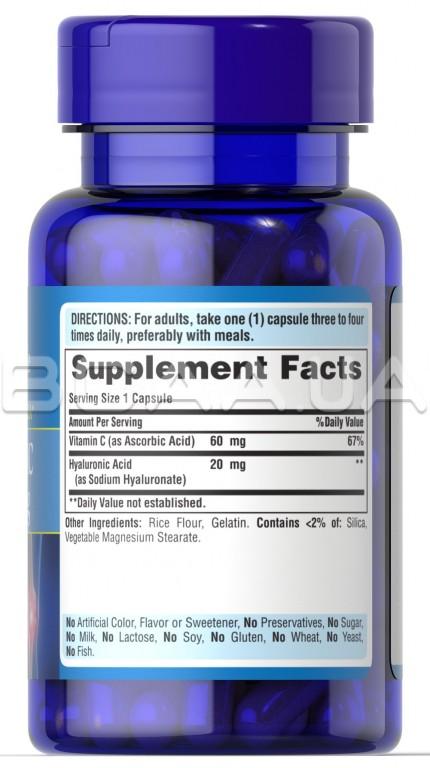 - Puritan's Pride Hyaluronic Acid 20 mg - полисахарид, который важен для соединительных тканей, включая связки, суставы, хрящи и кожу.