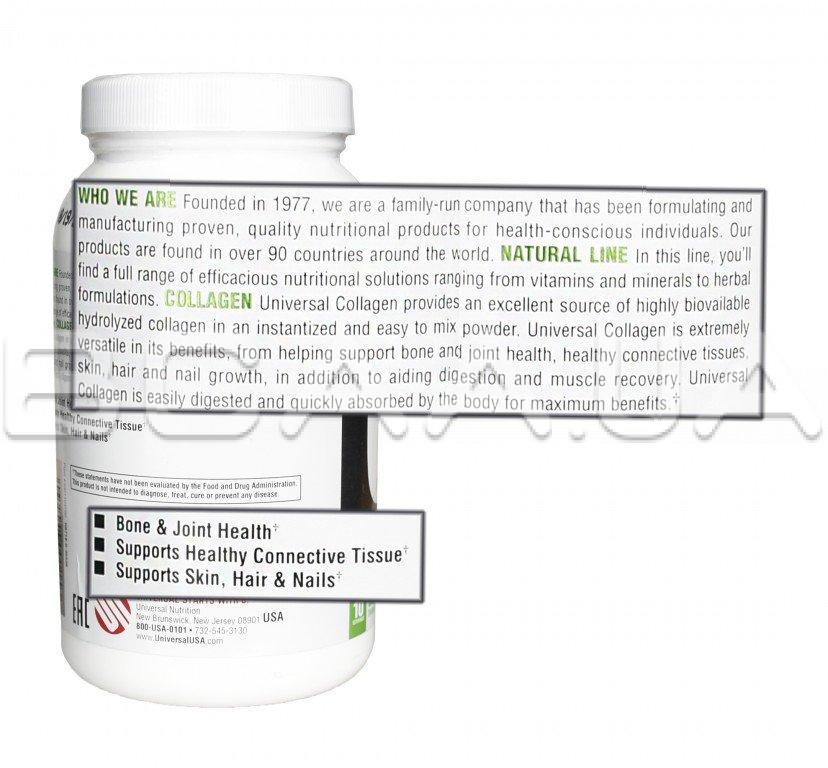 - Universal Collagen - в форме порошка без вкусовых ароматизаторов и подсластителей. Данный коллаген имеет биодоступную форму, легко и быстро усваивается организмом. Предназначен для применения с целью укрепления соединительных тканей организма, поддержания здоровья суставов и связок, улучшения состояния кожи, волос и ногтей.