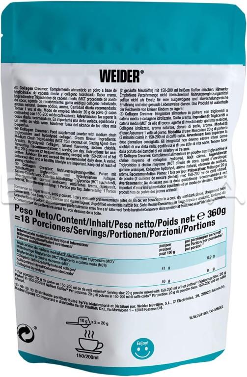- Weider, Collagen Creamer - кето-дружественный (keto-friendly) гидролизованный коллаген, который заботится о ваших костях, тканях и коже.