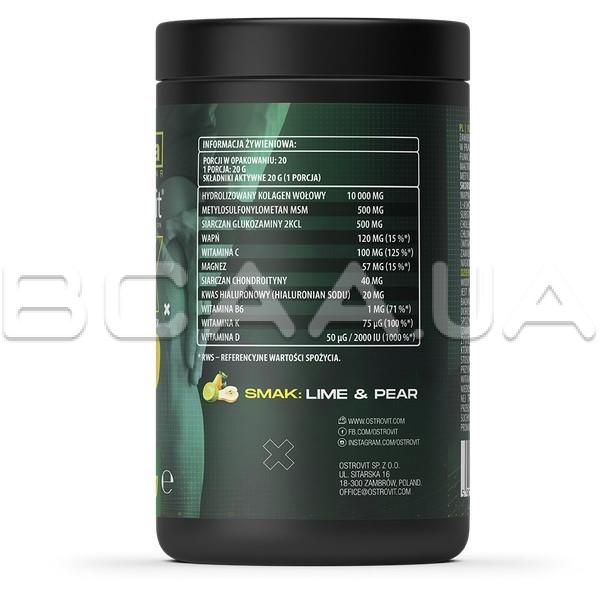 Ингредиенты: Гидролизованный говяжий коллаген, мальтодекстрин, регулятор кислотности: лимонная кислота; метилсульфонилметан, глюкозамина сульфат 2KCL (содержит моллюски), магниевые соли лимонной кислоты (магний), карбонат кальция (кальций), антислеживатель: диоксид кремния; L-аскорбиновая кислота (витамин С), ароматизаторы, хондроитинсульфат, подсластители: сукралоза, ацесульфам К; цвет: каротины; холекальциферол (витамин D), гиалуроновая кислота (гиалуронат натрия), пиридоксина гидрохлорид (витамин В6), менахинон-7 МК-7 (витамин К), полученные из Bacillus subtilis natto.