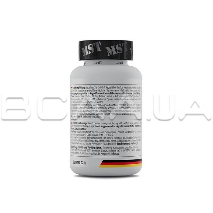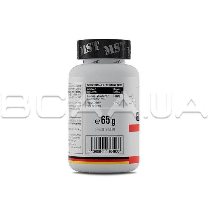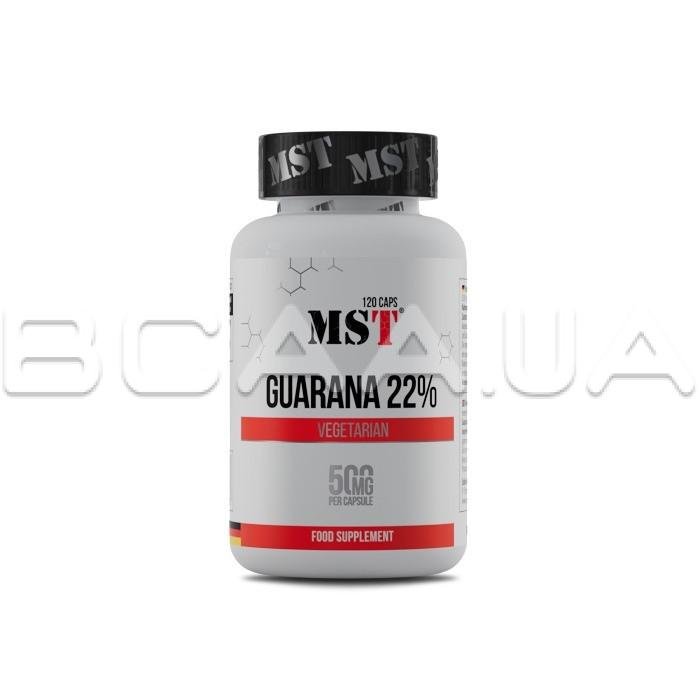 - MST, Guarana 22% — натуральная энергетическая добавка, предназначенная для повышения физической и умственной работоспособности. Каждая капсула содержит 500 мг экстракта гуараны, стандартизированного до 22% кофеина, что обеспечивает устойчивый прилив энергии без резких скачков, связанных с синтетическими стимуляторами.