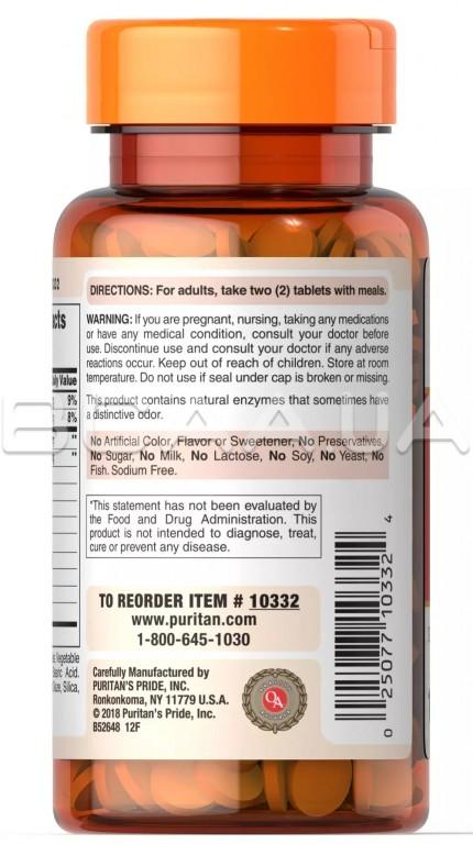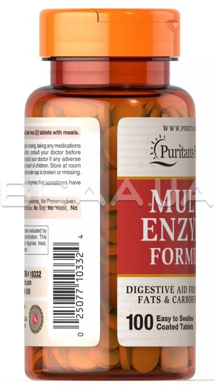 Описание Puritan's Pride Multi Enzyme Formula 100 Easy To Swallow Coated Tablets