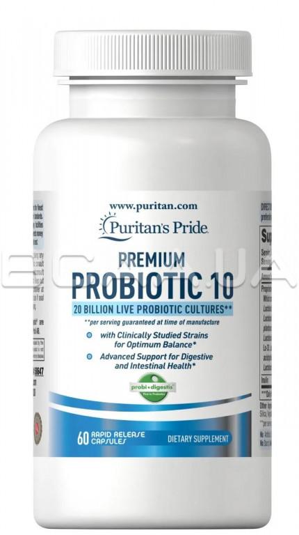 Описание Puritan's Pride Premium Probiotic 10, 60 Rapid Release Capsules