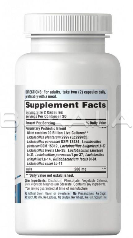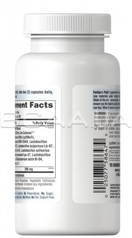 Другие ингредиенты: желатин, фосфат дикальция, диоксид кремния, растительный стеарат магния. Содержит молочные ингредиенты 20 миллиардов активных культур на каждую порцию, гарантированную на момент изготовления.