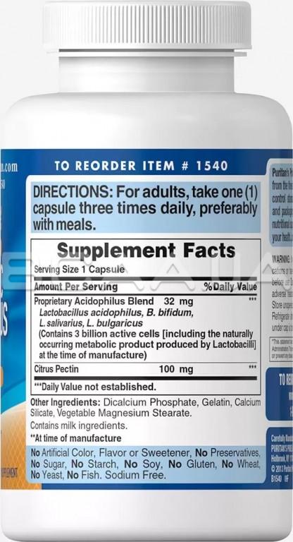 Описание Puritan's Pride Probiotic Acidophilus with Pectin 100 Rapid Release Capsules