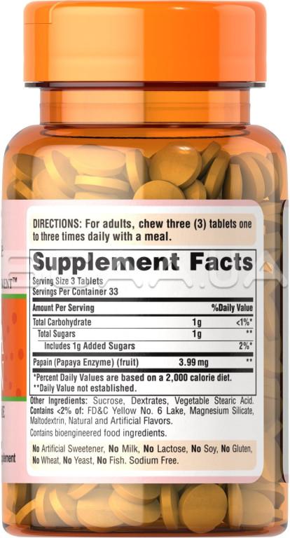 Puritan's Pride, Papaya Papain, 100 Chewable Tablets