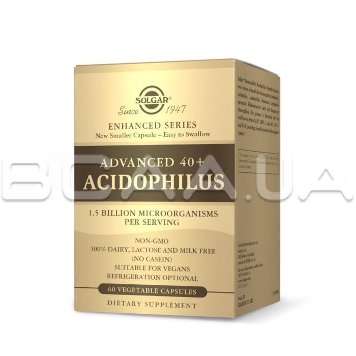 Описание Solgar, Advanced 40+ Acidophilus (Ферменты), 60 Vegetable Capsules