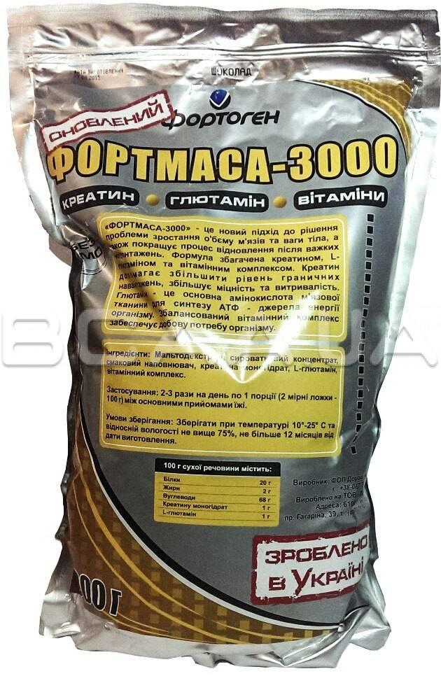 ФОРТМАССА 3000 - это новый подход к решению проблем с ростом мышечной массы и веса. Создана для спортсменов занимающихся усиленными физическими нагрузками. Оказывает содействие приросту мышечной массы, увеличивает работоспособность, стимулирует скорейшее восстановление, ускоряет процесс обмена веществ и максимальную выносливость организма. Формула оснащена креатином, глютамином и комплексом витаминов. В основу продукта, взята белковая и сывороточная смеси, а также молочный белок, взятые в специально рассчитанном соотношении. Углеводная основа - моносахариды и олигосахариды.