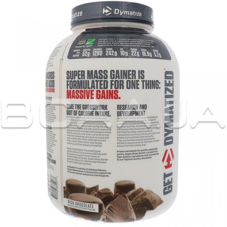 Super Mass Gainer от производителя Dymatize Nutrition – это топовый и высококонцентрированный гейнер, обеспечивающий по-настоящему внушительный набор массы. Он является незаменимой составляющей рациона профессиональных бодибилдеров. Также препарат поможет восстановить и ускорить набор сухих мышц атлетам с быстрым обменом веществ.