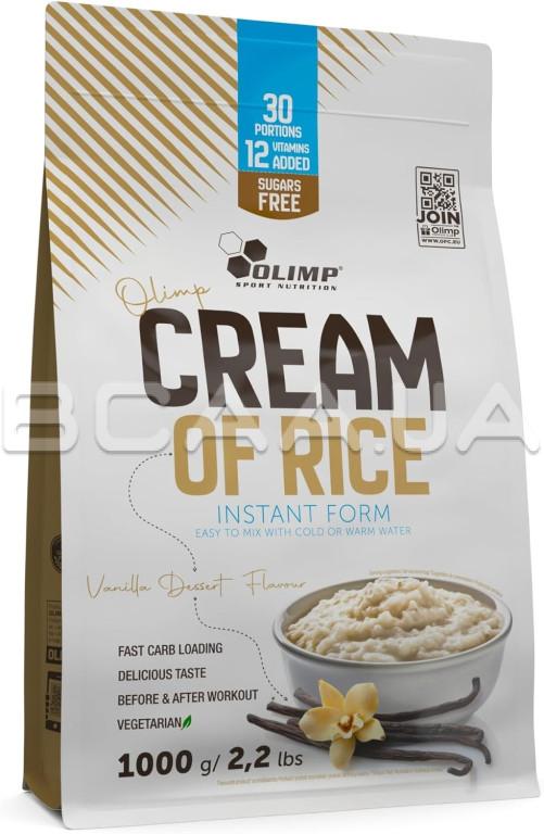 - Olimp, Cream of Rice - это мгновенные углеводы до или после тренировки. Оптимальное решение для людей, которые из-за нехватки времени и возможностей ищут удобное и быстрое в приготовлении блюдо на основе сложных углеводов. Чтобы приготовить что-то по-настоящему вкусное, не нужно никаких кулинарных навыков. Рисовый крем Olimp можно использовать в качестве еды перед запланированной интенсивной тренировкой или в качестве вкусного десерта (например, в сочетании с белковой добавкой).