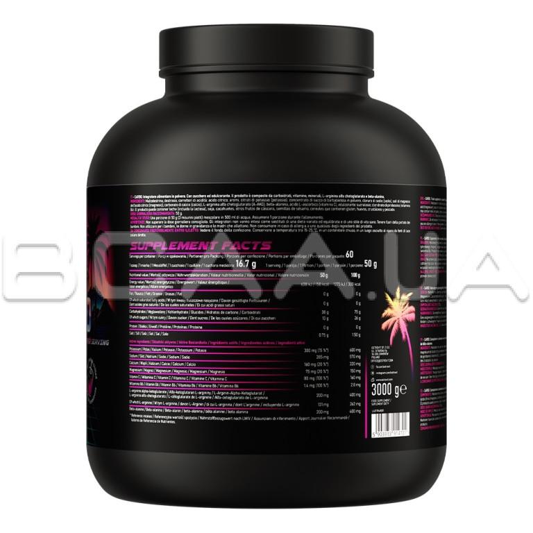 Ингредиенты: Мальтодекстрин, декстроза, регулятор кислотности: лимонная кислота; ароматизаторы, цитрат калия (калий), концентрат свекольного сока в порошке, хлорид натрия (натрий), магниевые соли лимонной кислоты (магний), карбонат кальция (кальций), L-аргинин альфа-кетоглутарат (AAKG), бета-аланин, L-аскорбиновая кислота (витамин C), подсластитель: сукралоза; пиридоксина гидрохлорид (витамин B6).