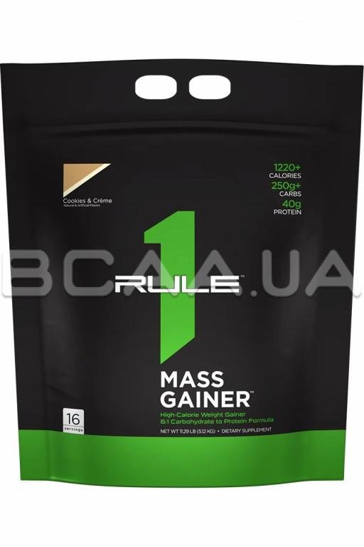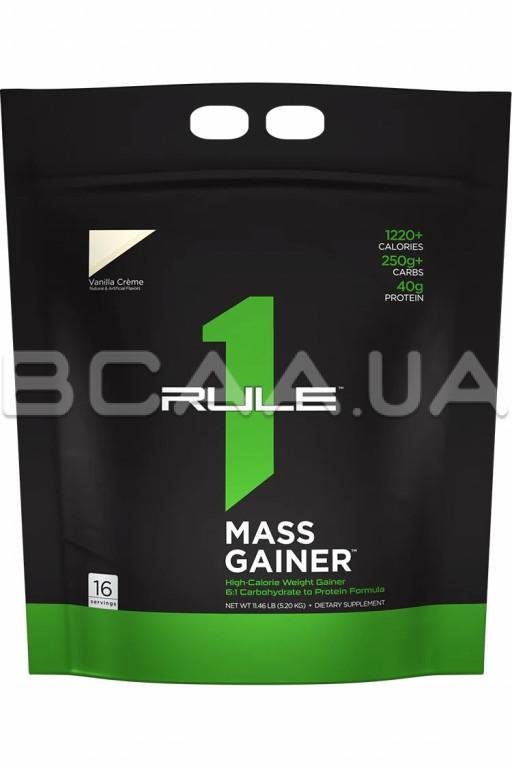 - Rule 1, Mass Gainer — это традиционный гейнер, содержащий высококачественные белки, большое количество сложных углеводов и огромное количество калорий, помогающих набрать вес.
