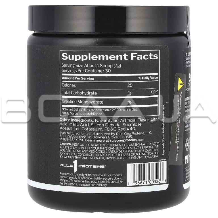 - Rule1, Creatine содержит моногидрат креатина, одну из самых исследованных и эффективных добавок для повышения спортивной производительности.