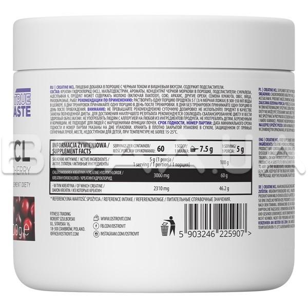 Ингредиенты: Креатин гидрохлорид (HCl), мальтодекстрин, ароматизаторы, порошок концентрата черной моркови, подсластители: сукралоза, ацесульфам К.