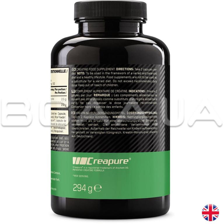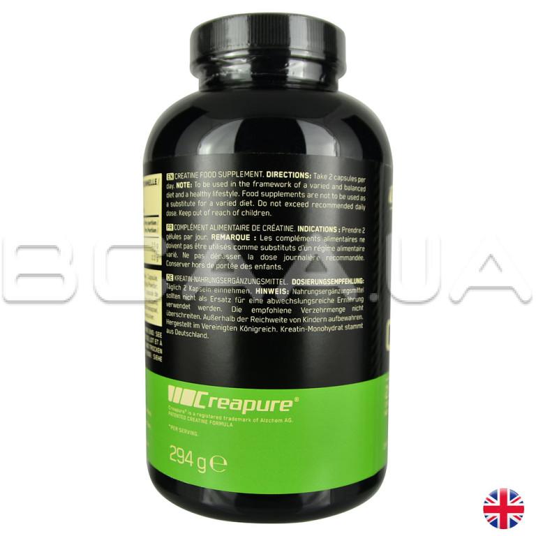 - Креатин марки Creapure чистотой 99,9% в форме капсул — это удобный способ приема добавки. Капсулы легко проглотить, они быстро растворяются и хорошо усваиваются. Моногидрат креатина предназначен для всех типов спортсменов, занимающихся силовыми видами спорта, любителей тренажерного зала и фитнеса, а также анаэробных видов спорта, такие как футбол или регби.
