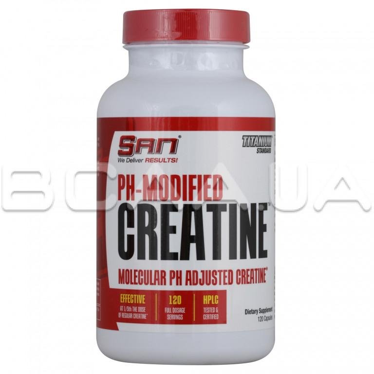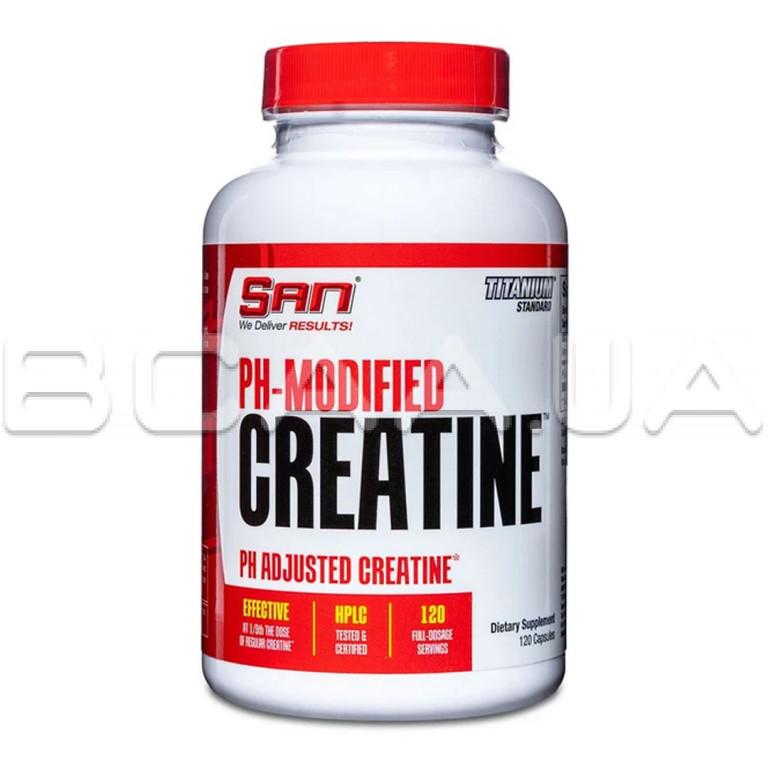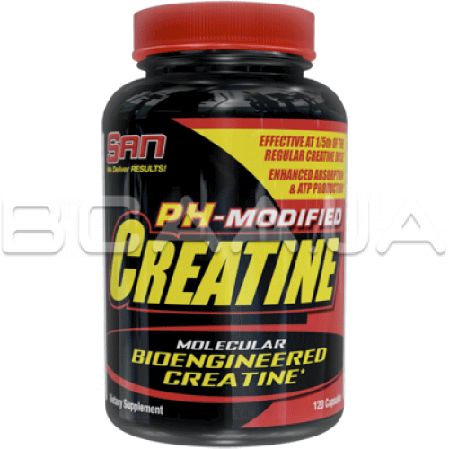 - San, PH-Modified Creatine – модифицированная формула креатиновой добавки, которая способствует существенному повышению выносливости и усваивается на 100%. По сравнению с обычным креатином моногидратом, эффективность внутриклеточного усвоения у PH-Modified в 5 раз выше. Для создания продукта использовалась молекулярная буферизация для изменения уровня PH, в результате чего эффективность креатина удалось повысить в 5 раз и сделать его более устойчивым к деградации кислотности желудочно-кишечного тракта. Поскольку при его прохождении через пищеварительную систему он в большинстве случаев остается неприкосновенным, весь его потенциал направлен на структуру мышц. В отличие от моногидрата, PH-Modified креатин практически не задерживает воду в организме, что делает его универсальной добавкой как на наборе массы, так и на сушке.
