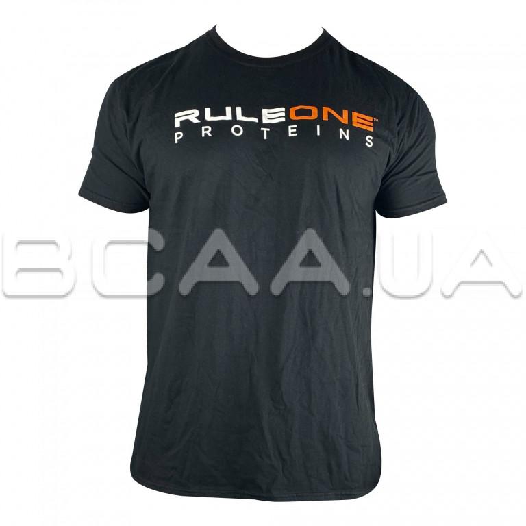 Черная футболка с логотипом Rule One Proteins.