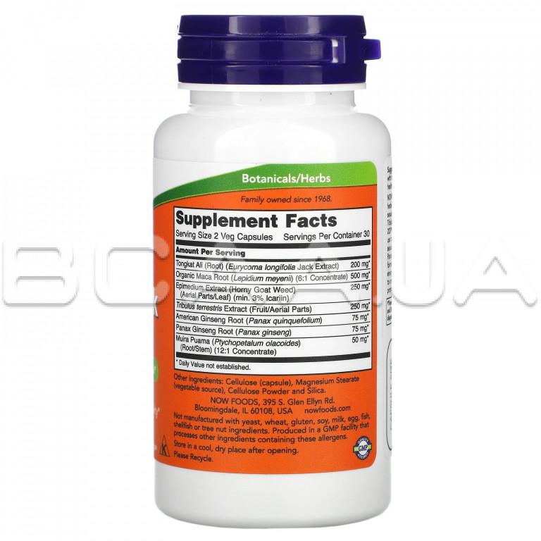 - Комбинация натуральных растительных ингредиентов, которые поддерживают здоровую сексуальную активность, репродуктивную функцию и либидо у мужчин. Содержит в составе Тонгкат Али, Трибулус, Мака и травку роговой козы. Добавление американского и обыкновенного женьшеня с муира пуама дополняет эту формулу благодаря их способности поддерживать устойчивый уровень энергии в организме.