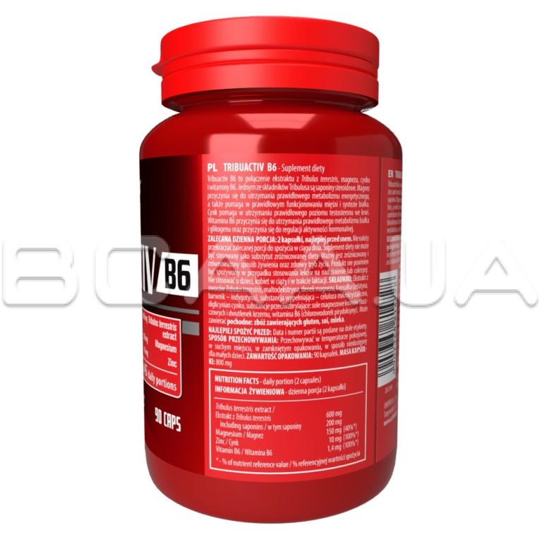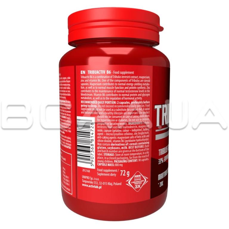 - Activlab, Tribuactiv B6 - это усиленная формула трибулуса для профи, имеет 60% профиль сапонинов! Также обогащен цинком, магнием и витамином B6, уникальный препарат, повышающий уровень тестостерона в организме спортсмена. Препарат выполнен на основе экстракта редкого растения — Tribulus Terrestris (Трибулус Террестрис), который с древних времен применяется для повышения выносливости организма и увеличения силового потенциала мышц.
